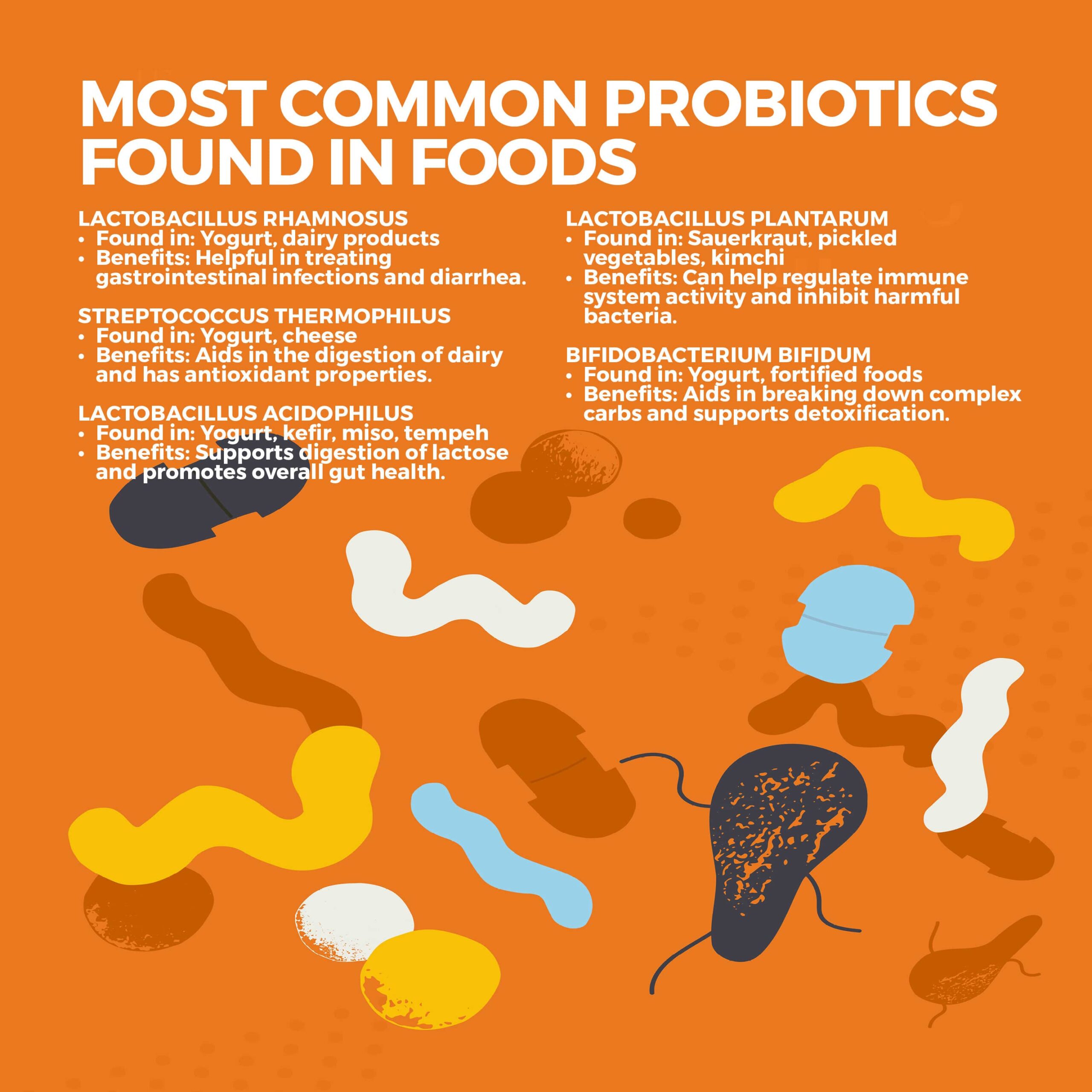 Aquí tienes una lista de algunos de los probióticos más comunes y los alimentos en los que puedes encontrarlos: