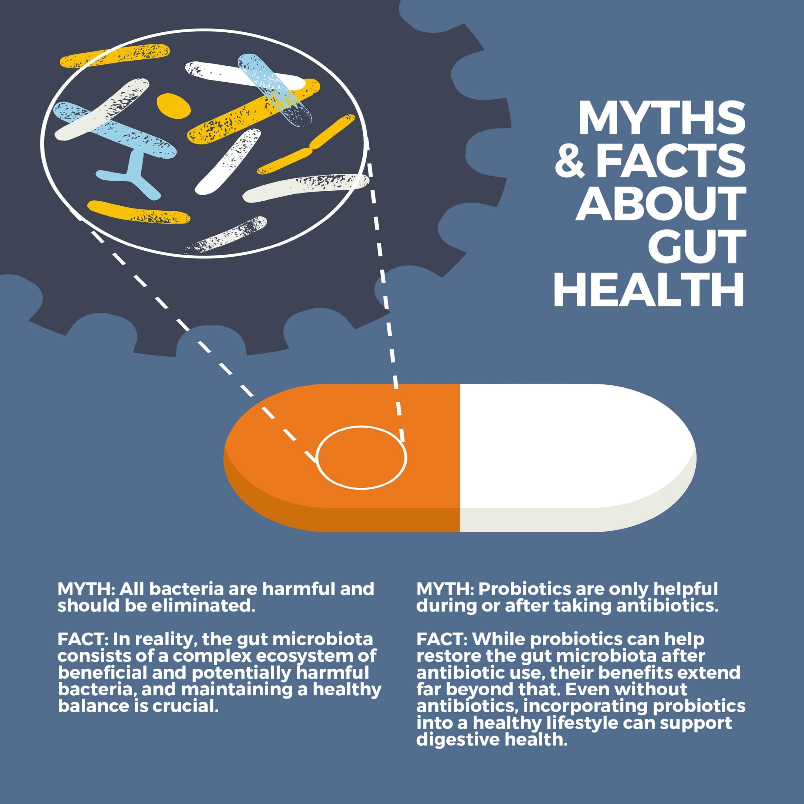 Existen varios mitos y conceptos erróneos en torno a la salud intestinal y los probióticos. Uno de ellos es que todas las bacterias son perjudiciales y deben eliminarse. En realidad, la microbiota intestinal está formada por un complejo ecosistema de bacterias beneficiosas y potencialmente dañinas, y mantener un equilibrio saludable es crucial.